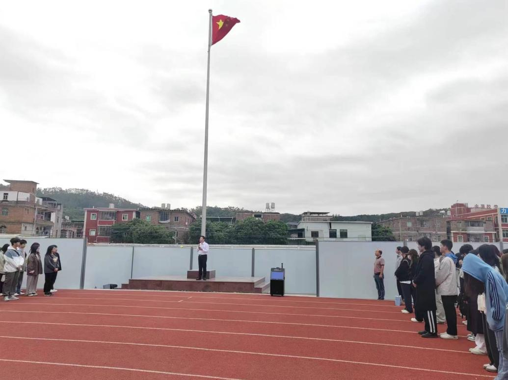 升旗仪式由慈山分院学生科科长张水波主持,分院教务科科长王怀阳、全体辅导员参加升旗。