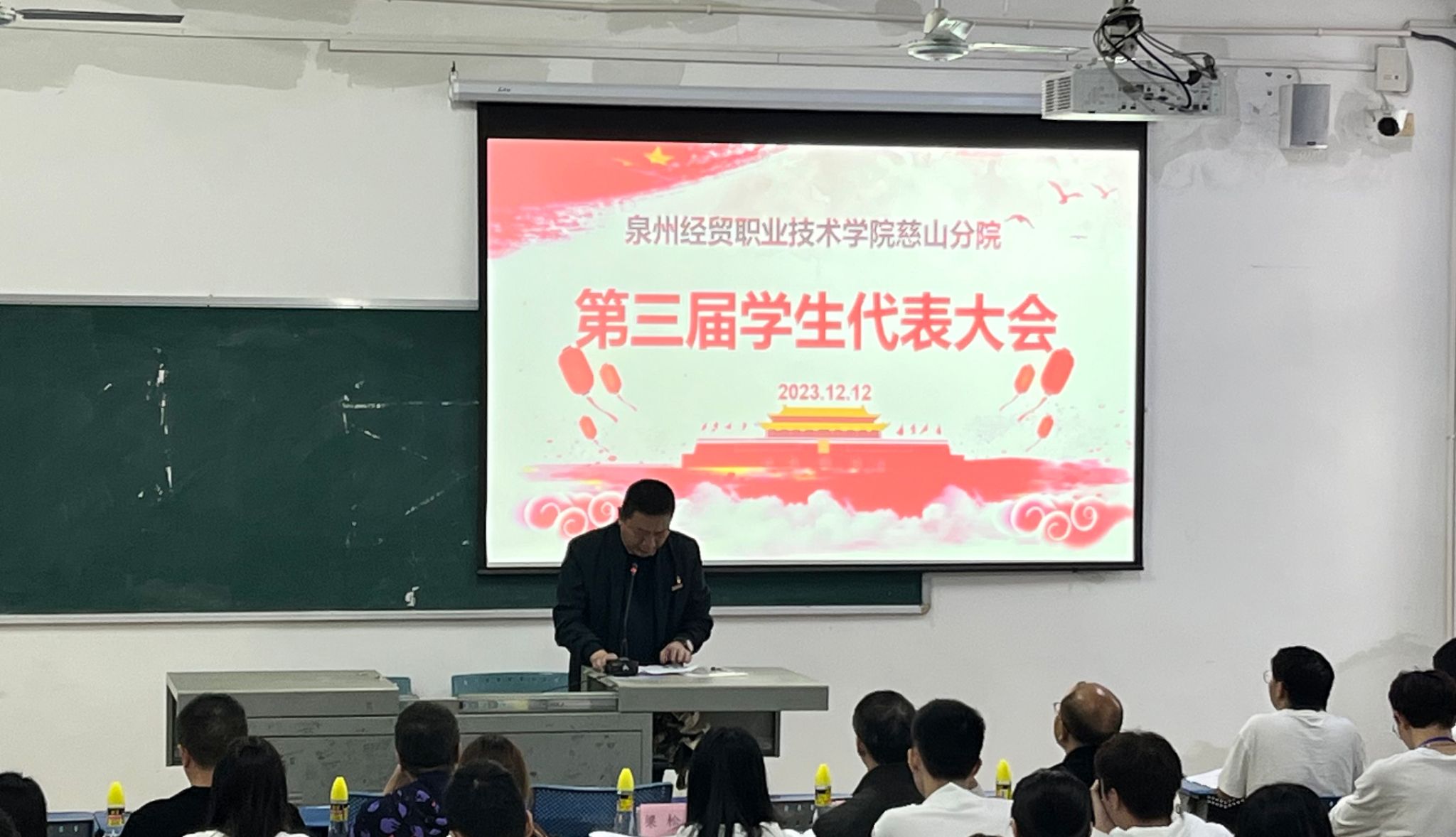 2023年12月12日,慈山分院第三次学生代表大会在学院新教503教室召开。学院党委委员、慈山分院党总支书记、院长梁松刚、学院团委副书记张永辉、分院学生科科长张水波、分院教务科科长王怀阳出席开幕式。会议由分院团委书记董振华主持。