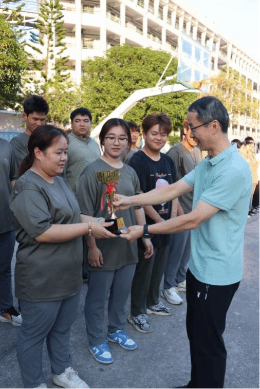 分院教务科科长王怀阳老师和学生科科长张水波老师亲临现场,他们不仅以裁判的身份参与其中,确保比赛的公平公正,并在赛后为获胜队伍颁发奖杯和佩戴奖牌,增添赛事的荣誉感和仪式感。