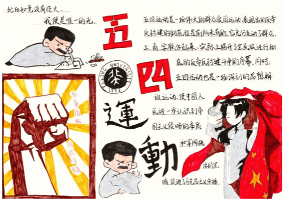 为深入弘扬五四精神,激发青年学子的爱国情怀,展现新时代大学生的青春风采,近日,慈山分院成功举办了"笔绘山河志,青春正当时"五四精神主题手抄报比赛。本次活动以艺术创作为载体,旨在引导青年学子深刻领悟五四精神的核心内涵,传承红色基因,进一步丰富校园文化生活。
